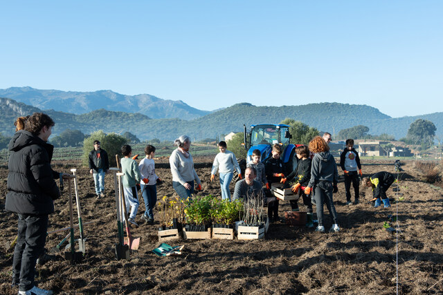 La plantation a été faite le plus tôt dans la saison afin que les plants profitent des pluies hivernales. Cela permet de maximiser les chances de survie des arbres dans un contexte climatique stressant. La météo a particulièrement été suivie afin de pouvoir planter dans les meilleures conditions possibles : pas de sol engorgé d’eau ni de sol gelé. Les plantations ont été réalisées grâce à la mobilisation des viticulteurs, de leurs proches, ainsi que des élèves de 2 classes de l’école primaire de Patrimonio.