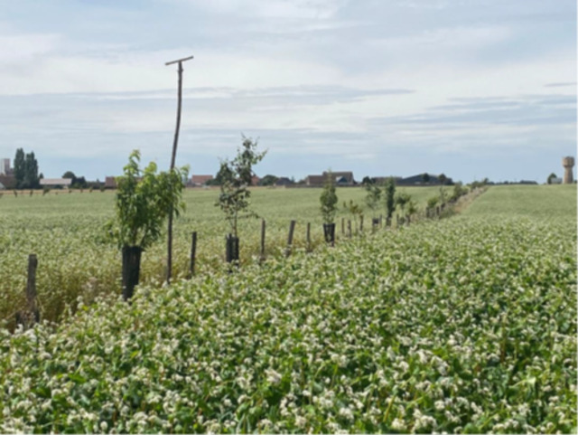 Ce projet porte donc une ambition forte : démontrer que l’arbre a toute sa place dans les systèmes de grande culture. Yves, agriculteur et porteur du projet, en est convaincu. Il souhaite que ses terres abritent de la biodiversité et soigne ainsi ses sols avec un couvert permanent entre deux cultures et évite absolument le labour profond. Il attend aussi des arbres, par un effet coupe-vent et par leurs enracinements, une limitation de l’érosion des sols, un enrichissement en matière organique et une meilleure rétention de l’eau. Très intégré aux réseaux professionnels locaux, il essaie à son échelle de convaincre ses pairs, mais ce n’est pas facile pour le moment. « Si ça t’amuse », s’est-il entendu dire.
